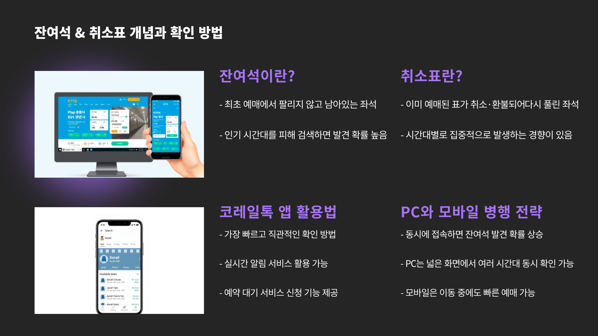 - 모바일+PC 병행 전략: 동시에 접속하면 잔여석 발견 확률 상승